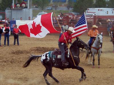 During the Grand Entry, around mid-day, both the American and Canadian National Anthems are sung to the parade of the flags. |