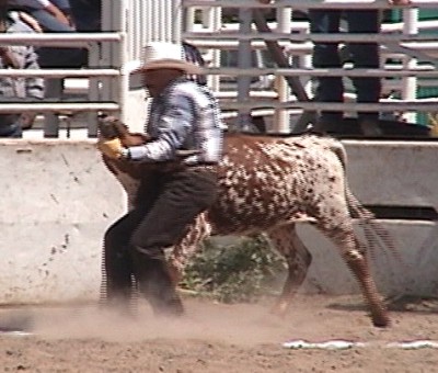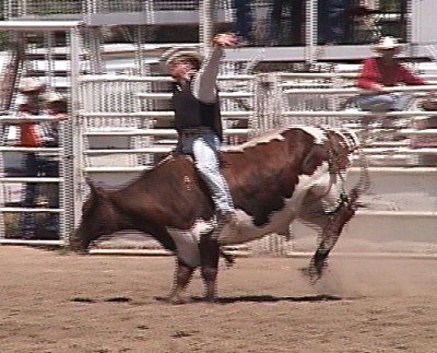 Steer Riding. Stay on for 8 seconds without your free hand touching yourself, your hat or the animal.