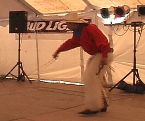 As well as the rodeo events, entertainment was on throughout the day. This ropin' cowboy's nickname is Pearly May. This is the same guy seen above in the white dress on the Wild Drag Race.