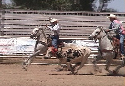 Team Roping. The first person, or header, lassos the head and the second person lassos the rear feet.