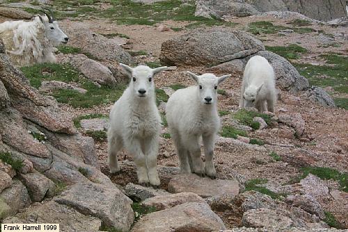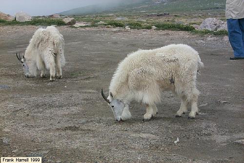| Mountain Goats after minerals, mostly salt, in the ground. Much of the salt is from cars making the trip in wintery conditions. |