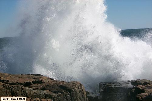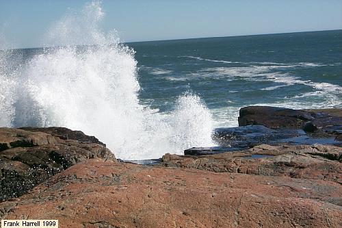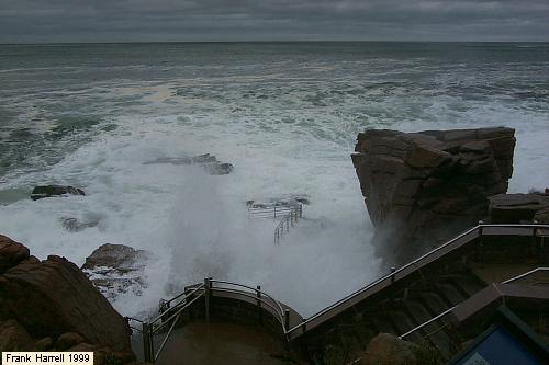 | Sometimes rocks the size of grapefruit are hurled hundreds of feet as the waves pound the shoreline. |