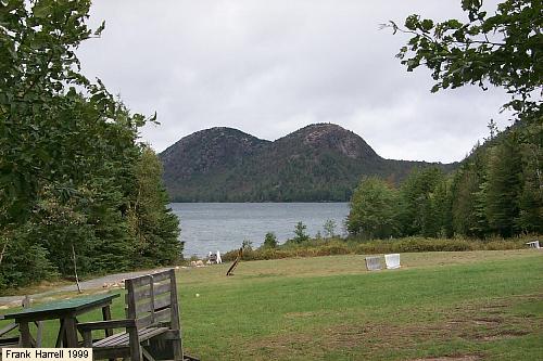 | Jordan Pond with the Bubbles in the distance as seen from the tea lawn of the Jordan Pond House restaurant. |