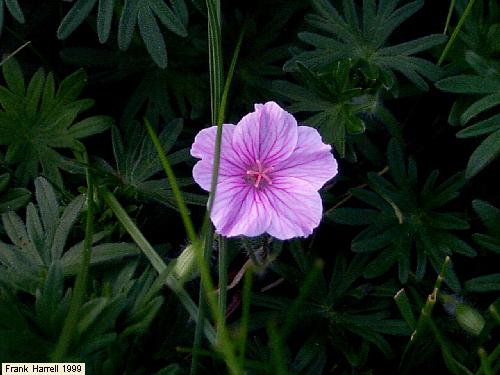 | Clematis jackmanii Geranium sanguineum 'striatum' or 'lancastriense' Scott's House in East Lamoine Maine | |